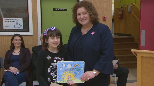 Area MHA Sherry Gambin-Walsh presented an award to Woodland Elementary Grade 3 student Zoe George, who was one of two students to win a poster contest showing how students can put friendship first.